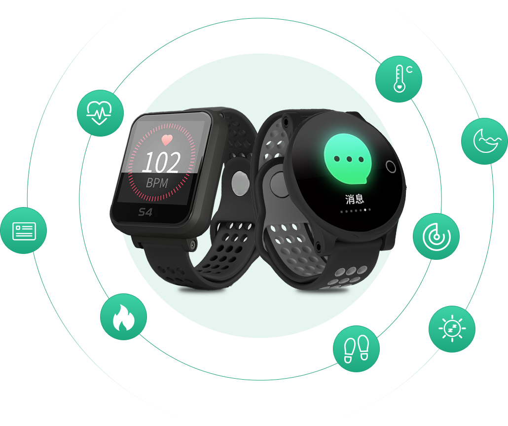 心率监测 | 卡路里消耗值 | 运动量监测 | 运动步数 | 睡眠监测 | 测温、测光、测近视 | 一卡通智能考勤