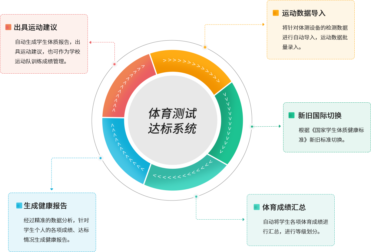 通过分析学生体育课中生理指标变化特点,客观评价体育课程教学效果,进而达到优化配置教学资源的目的,为学校、教师、学生提供管教学评练测研为一体的教学管理平台